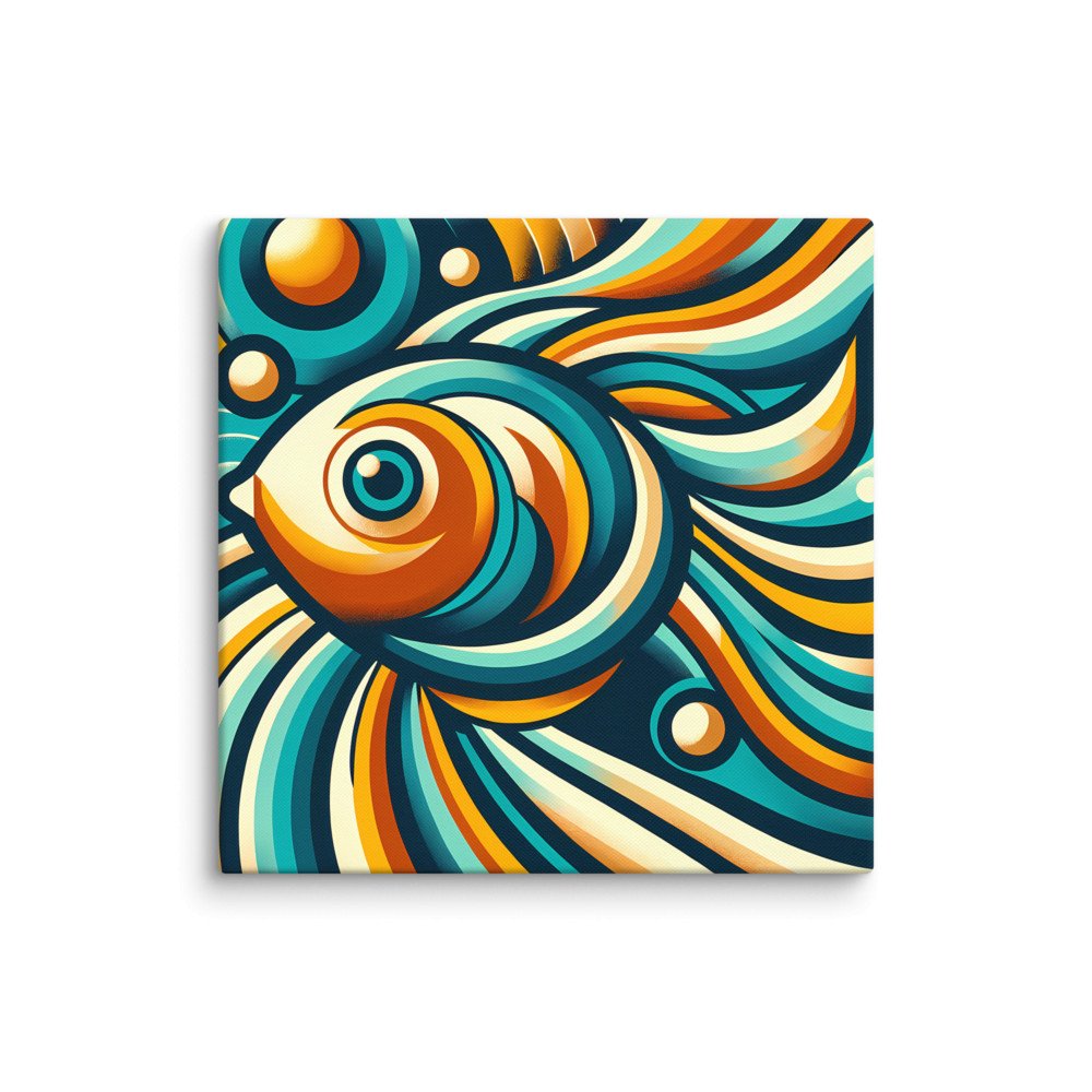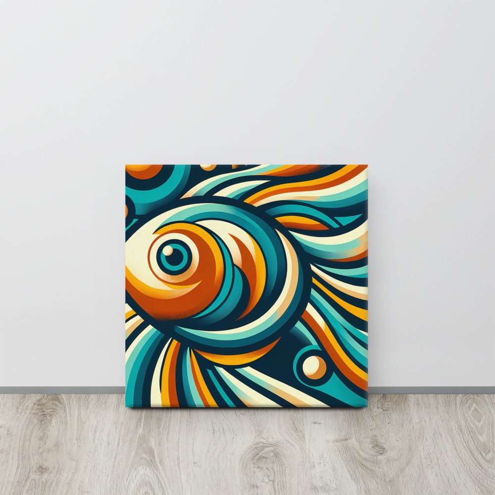 Retro Abstract Fish Swirl in Teal and Orange — Canvas Print