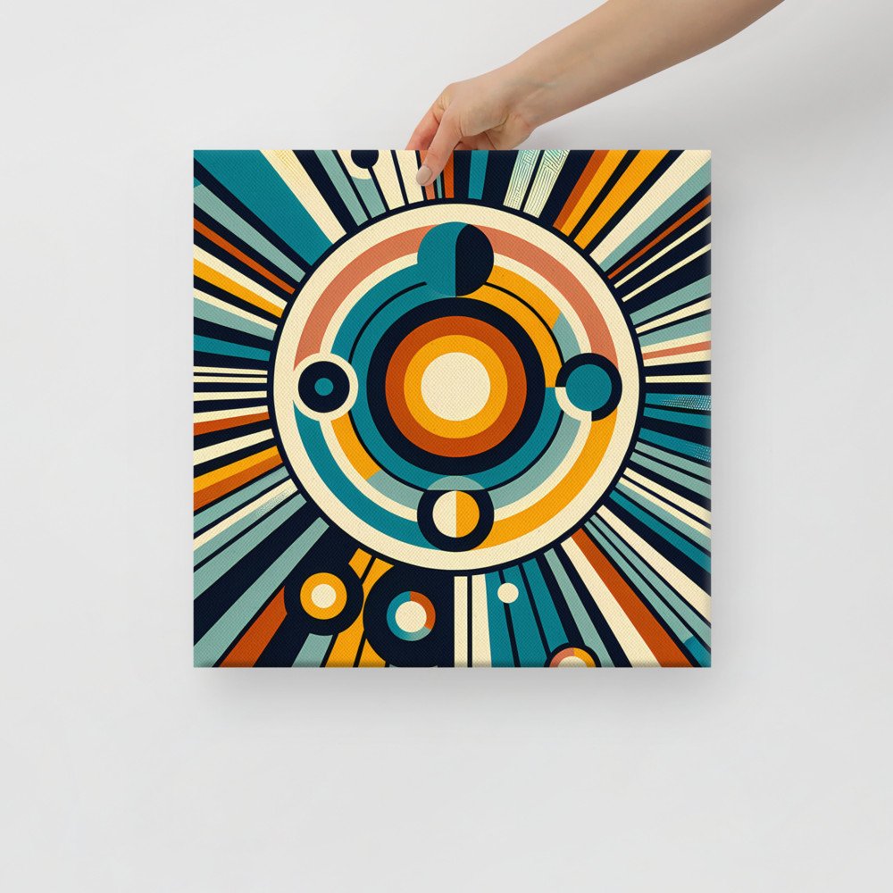 Orbit RadianceRetro Geometric Circles with Radiant Lines — Canvas Print