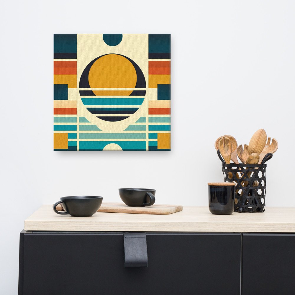 Tidal SegmentGeometric Sunset Shapes in Retro Stripes — Canvas Print