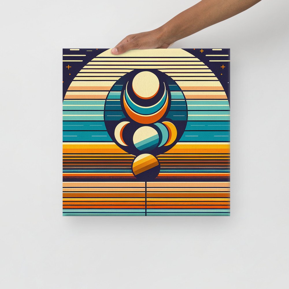 Geometric Moon Phases Over Retro Stripes — Canvas Print