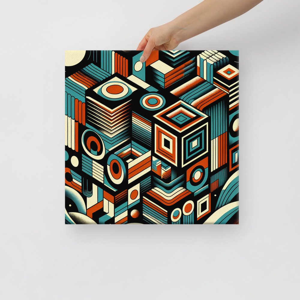 Cosmic ArrayRetro Geometric Space Cubes in Teal and Orange — Canvas Print