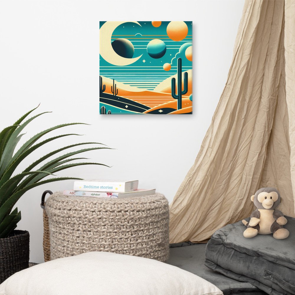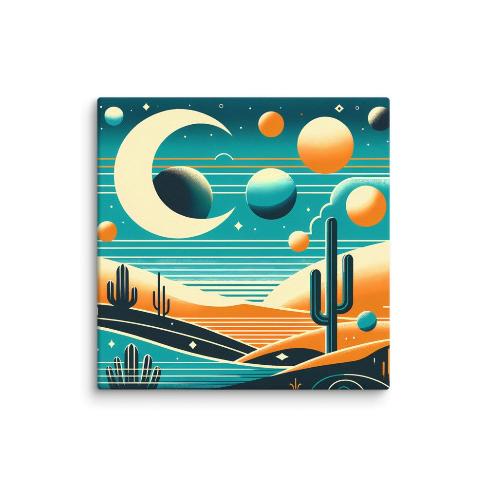 Cactus NebulaGeometric Desert Moon and Planets Gradient Scene — Canvas Print