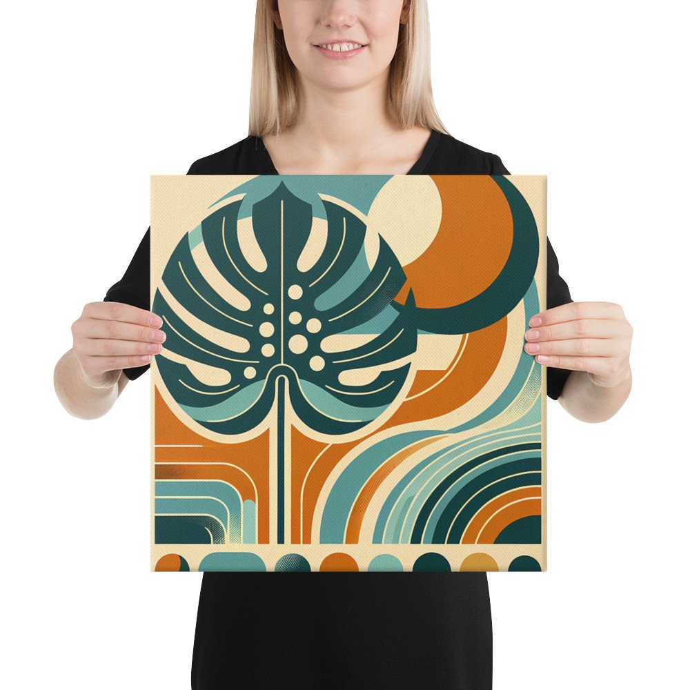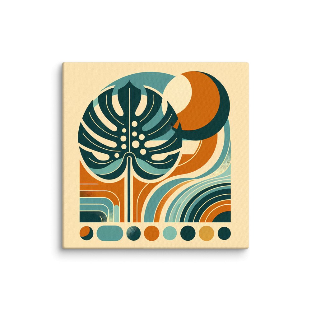Canopy GroveAbstract Monstera Leaf with Retro Geometric Shapes — Canvas Print