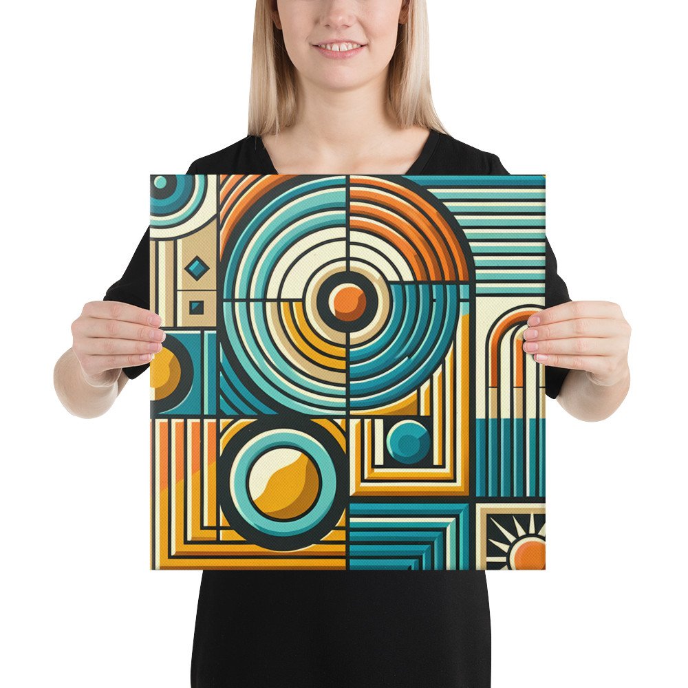 Retro Geometric Circles and Stripes Abstract Grid — Canvas Print