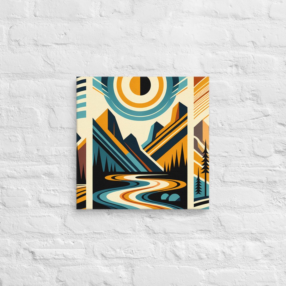Sundrenched ReverieGeometric Mountain River Under Sun — Canvas Print