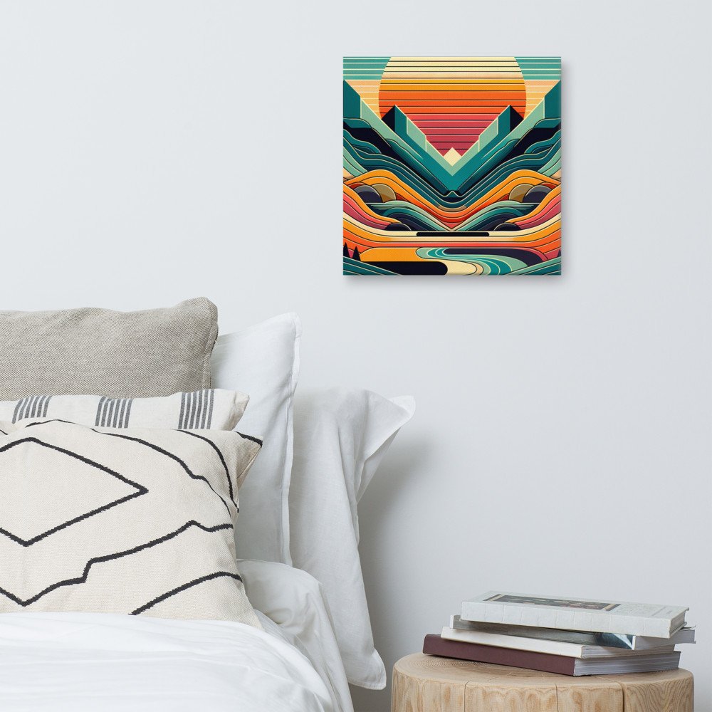 Geometric Mountains Sunset with Layered Valley Lines — Canvas Print
