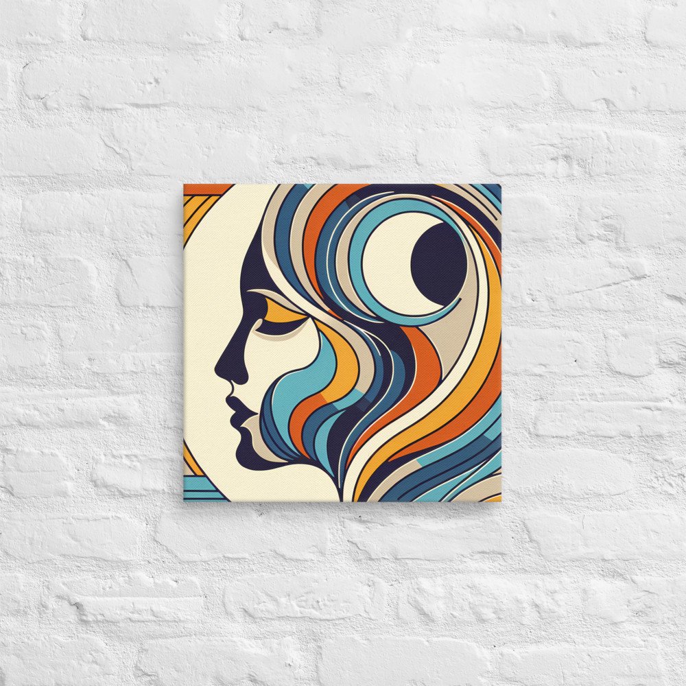 Breeze WhisperAbstract Woman Profile with Flowing Retro Waves — Canvas Print