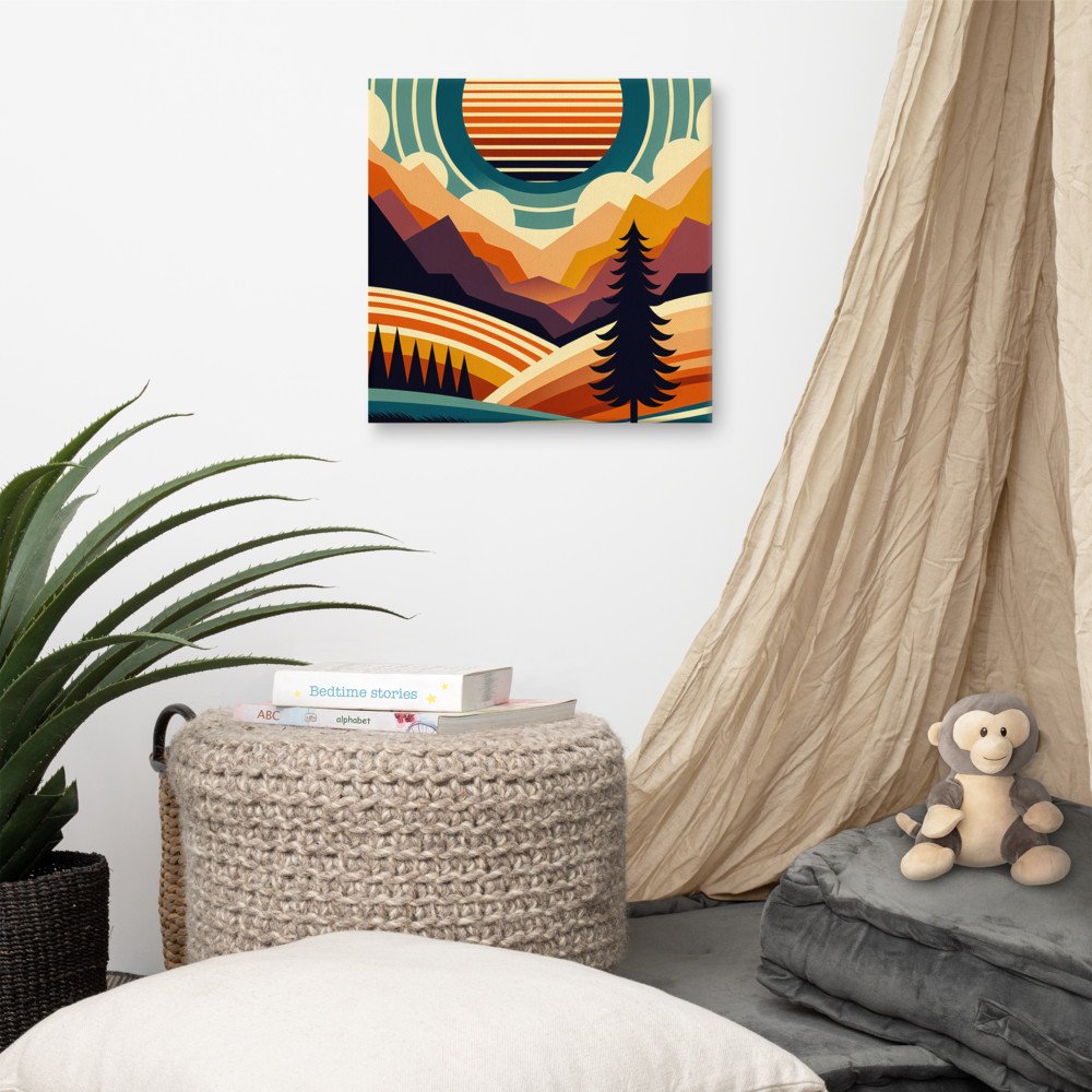Geometric Mountain Sunrise Landscape — Canvas Print