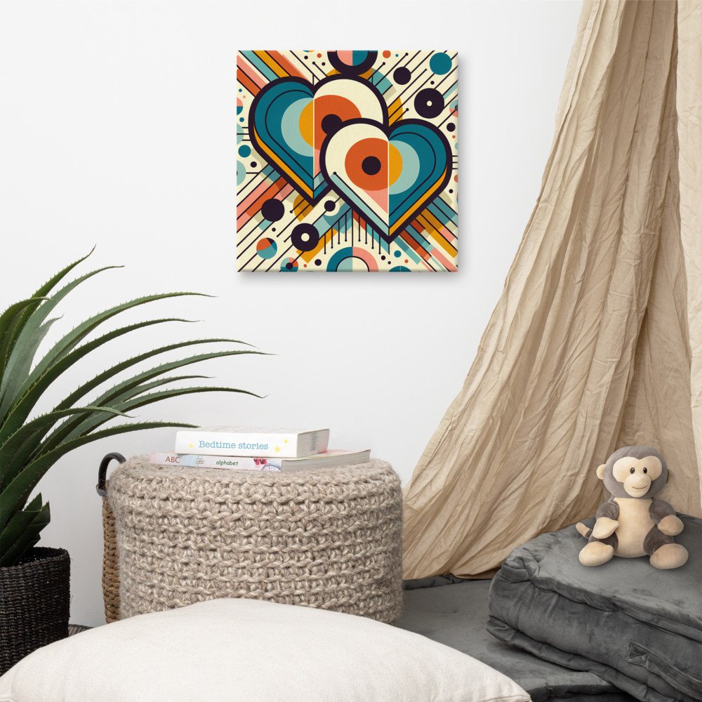 Geometric Heart Duo with Retro Circles and Lines — Canvas Print