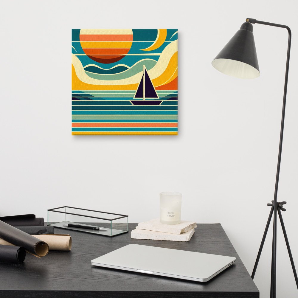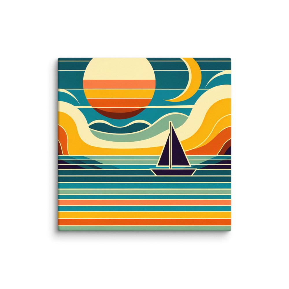 Marina GlowMinimal Sailboat Sunset with Moon and Waves — Canvas Print