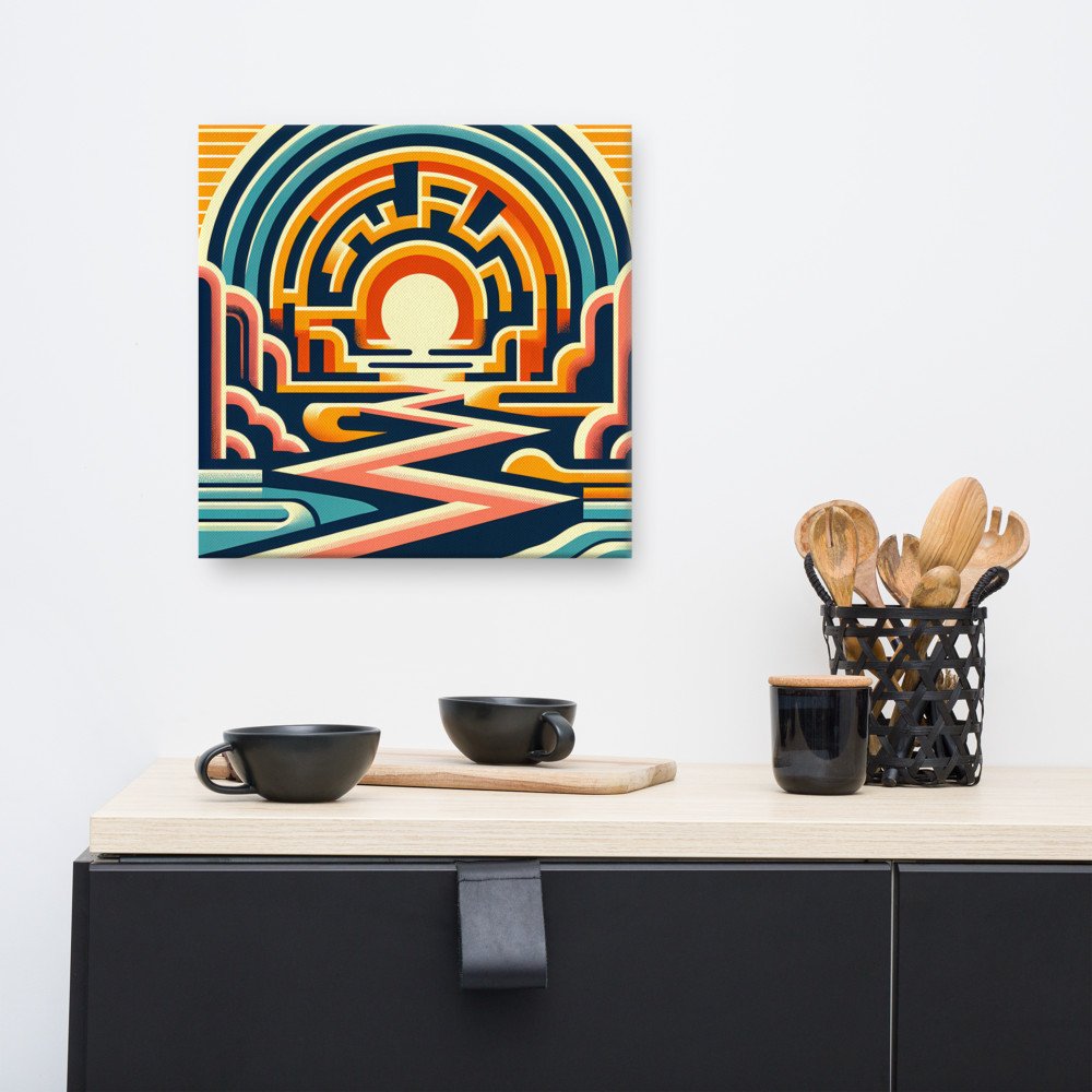 Geometric Sunset Over Zigzag River Canyon — Canvas Print