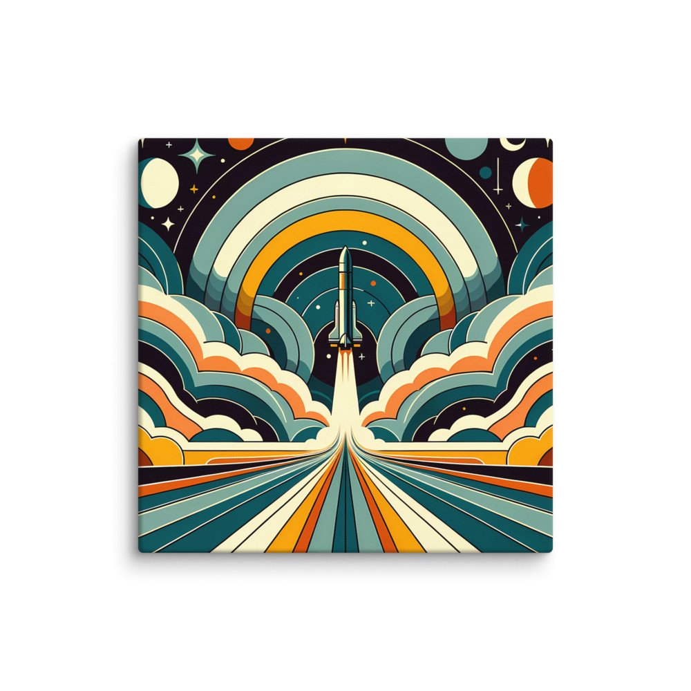 Retro Rocket Launch Through Geometric Clouds — Canvas Print