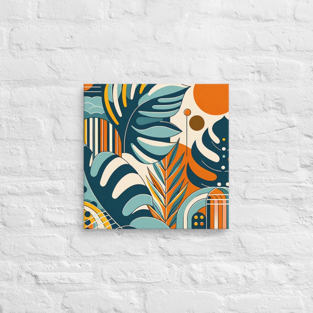 Abstract Botanical Leaves with Orange Sun — Canvas Print