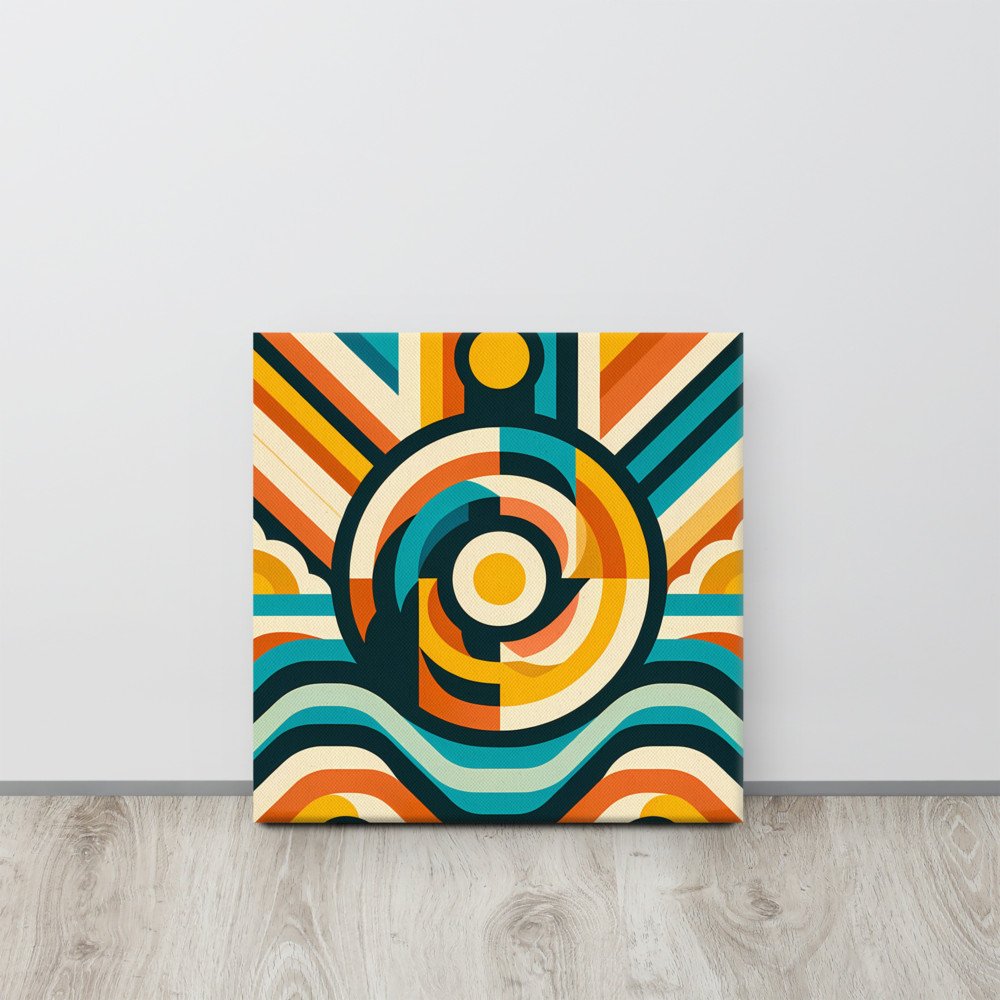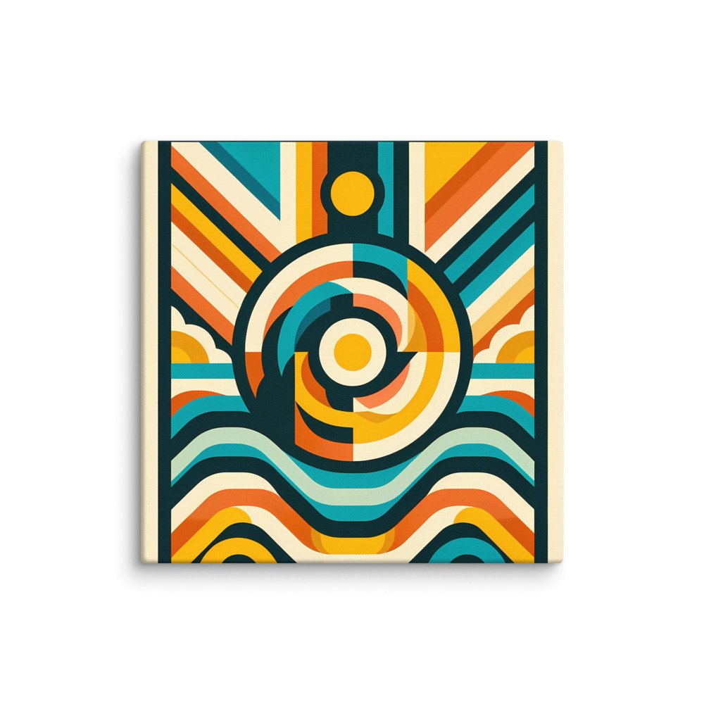 Retro Geometric Sun and Waves — Canvas Print