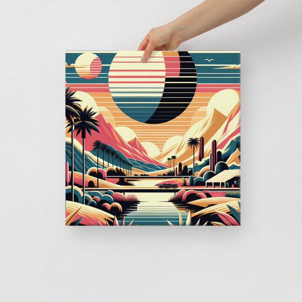 Retro Desert Mountain Landscape with Eclipse Sunset — Canvas Print