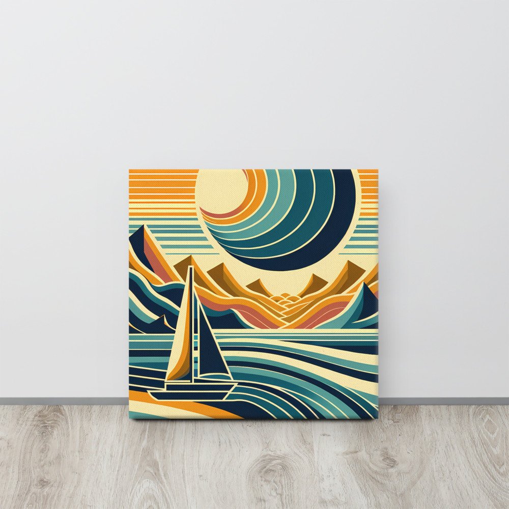 Evening Caravel IIIGeometric Sailboat at Sunset — Canvas Print