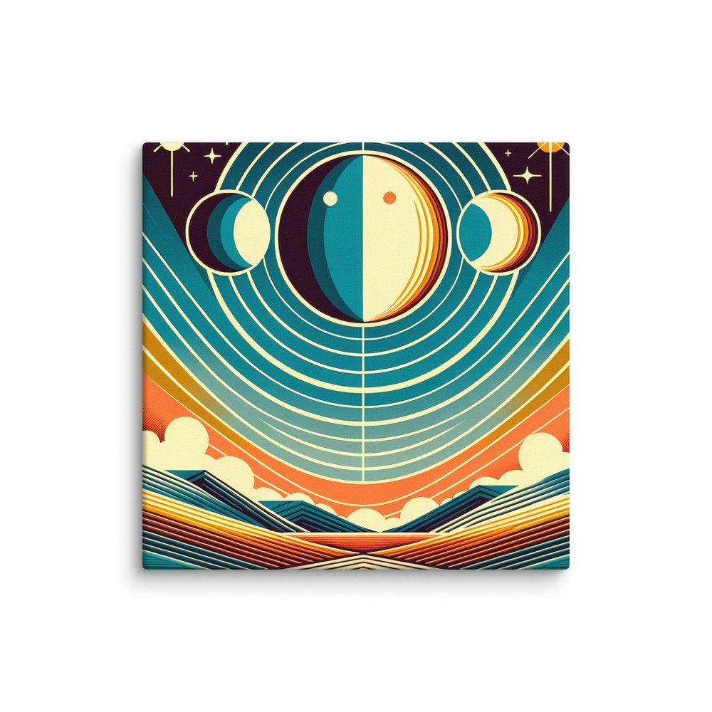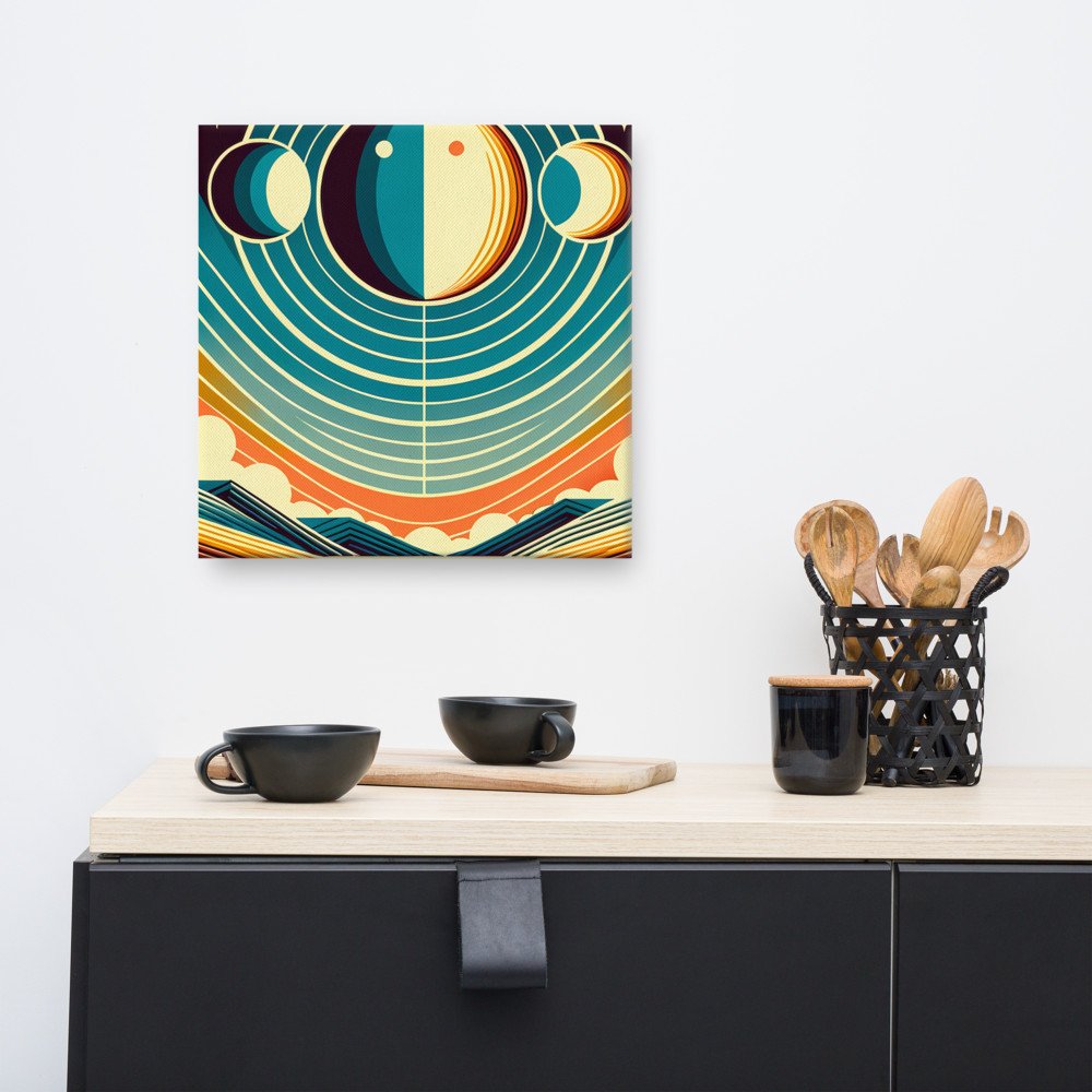 Geometric Moon Phases Over Abstract Horizon — Canvas Print