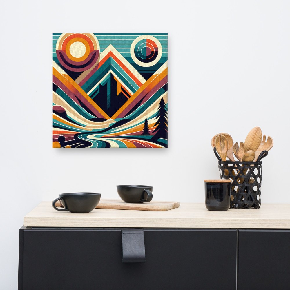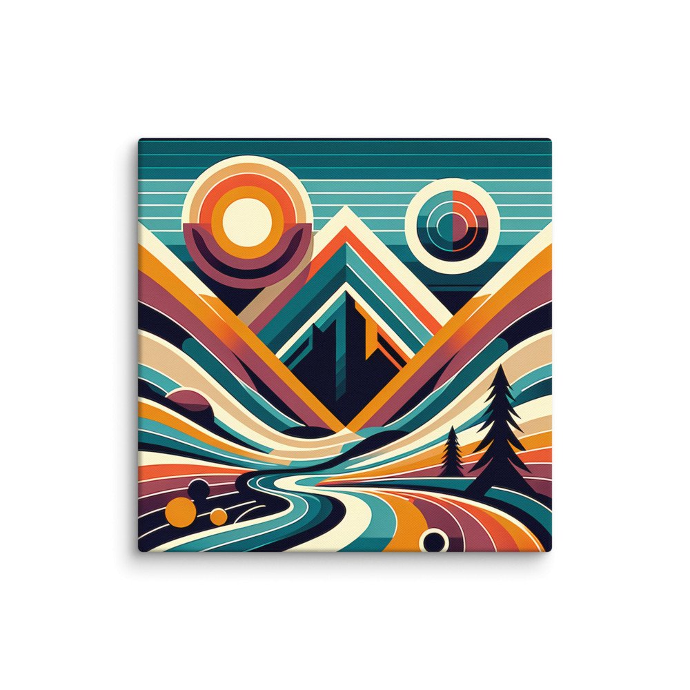 Geometric Mountain Valley with Retro Sun — Canvas Print