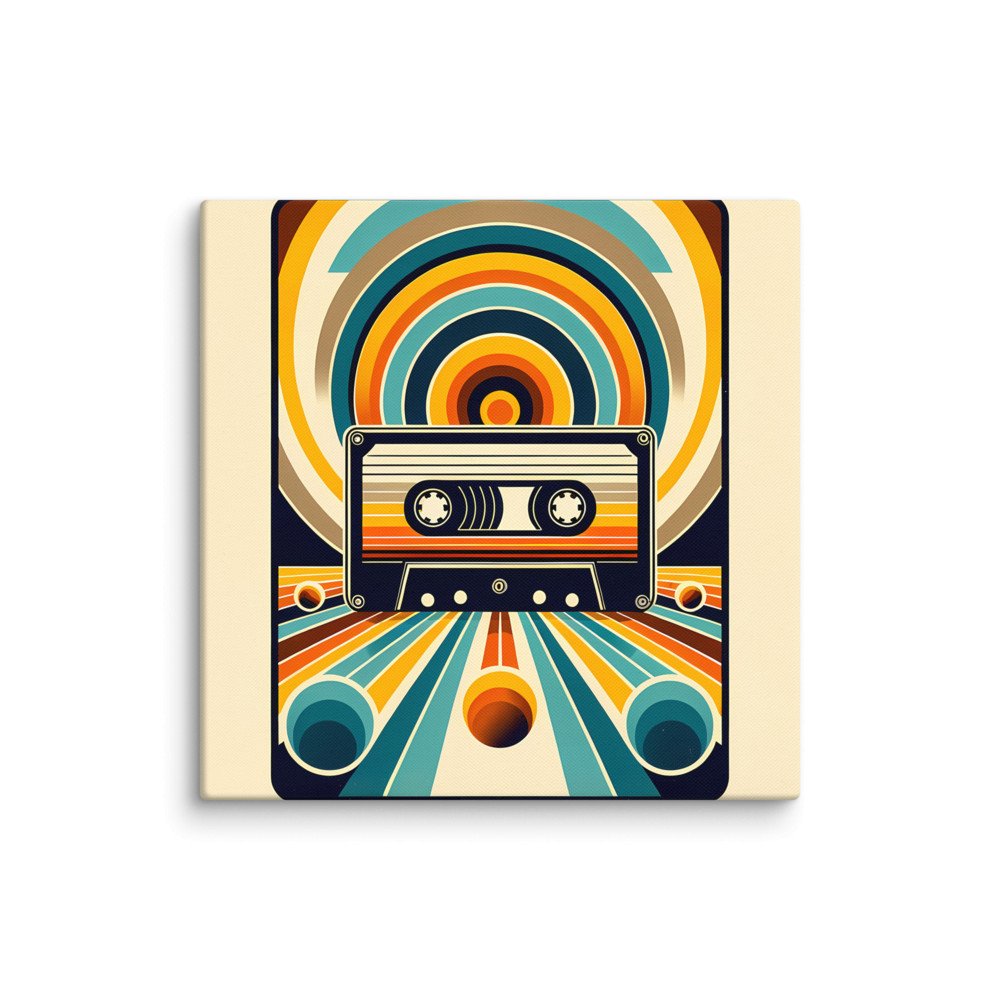 Retro cassette with geometric rainbow lines — Canvas Print