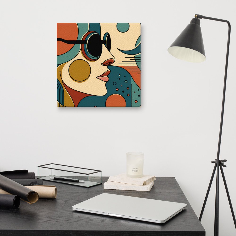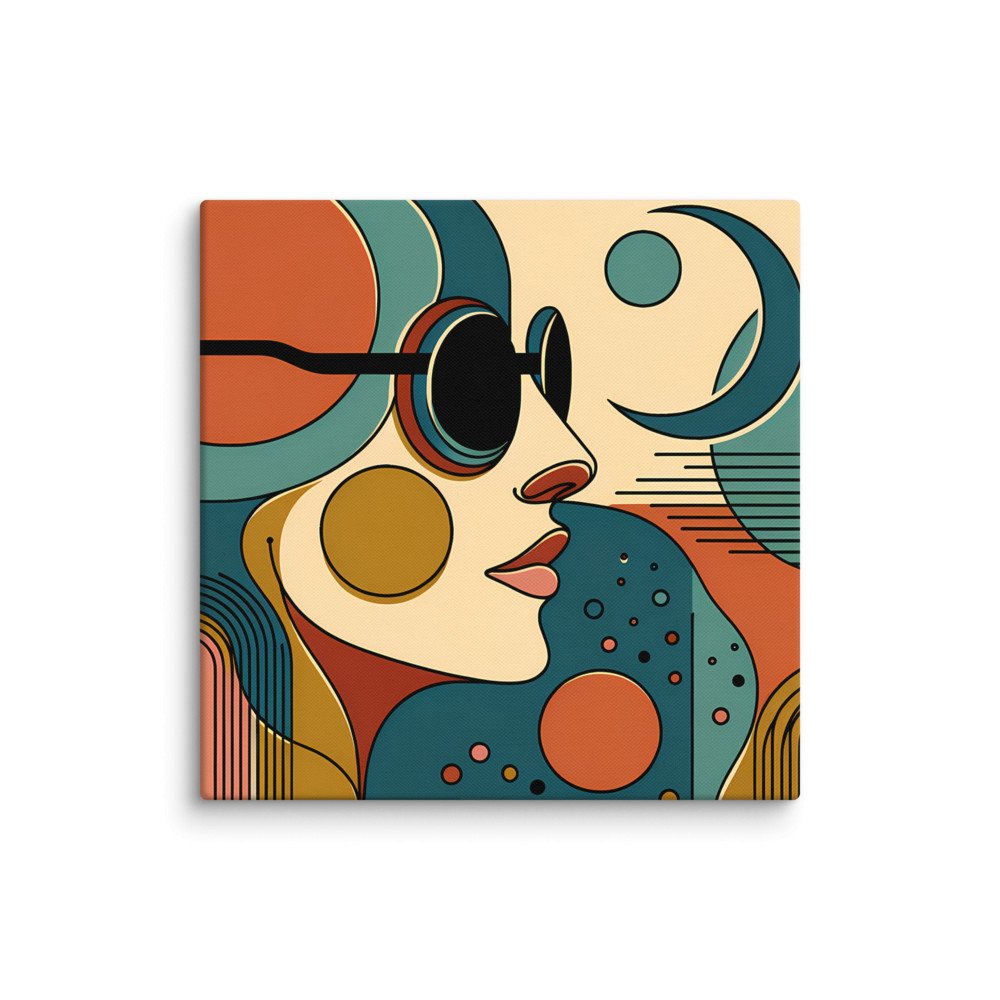 Abstract Line Face with Moon and Geometric Shapes — Canvas Print