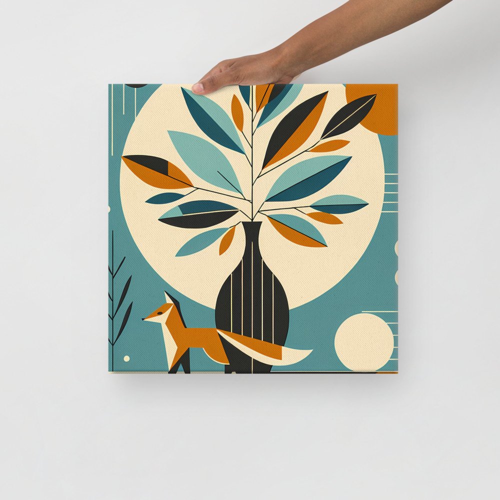 Orchard SoliloquyGeometric Fox and Botanical Vase Illustration — Canvas Print