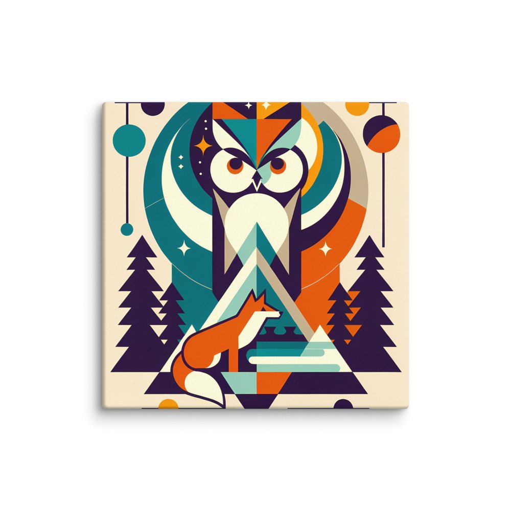 Twilight RefugeGeometric Owl and Fox Forest Scene — Canvas Print