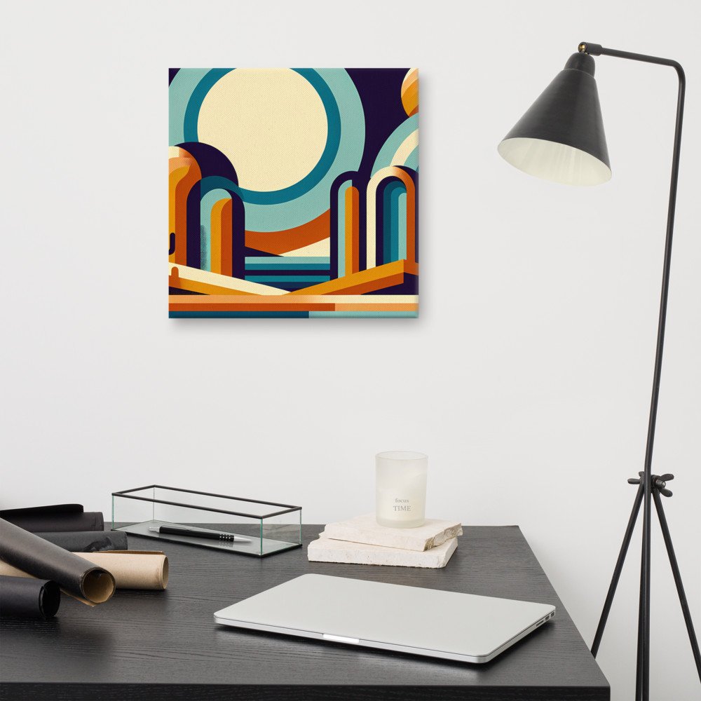 Mounted on a deep stretcher frame, this canvas presents the crisp, geometric arches with substantial presence. The bold, minimalist composition in retro tones creates a focal point of calm, structured warmth for your wall.