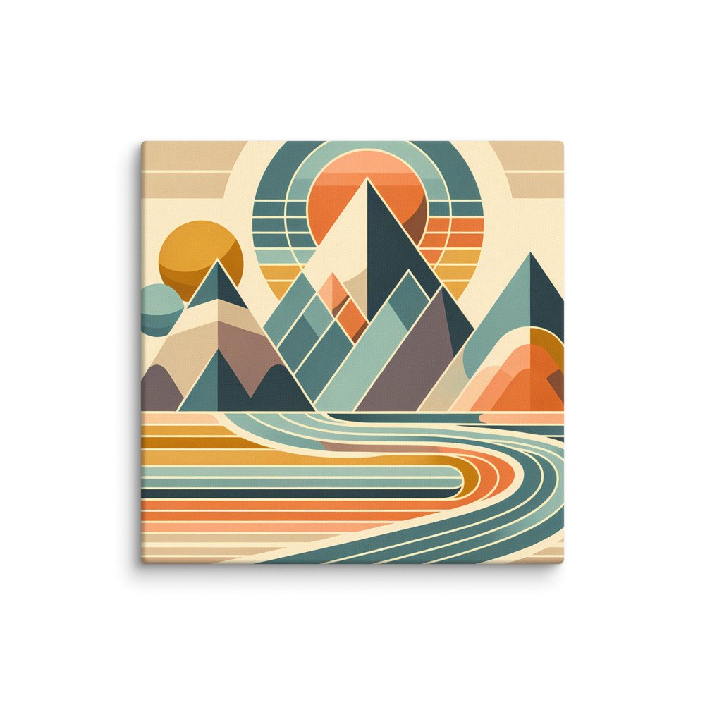 Canyon SolariumGeometric Mountain Landscape with Retro Sun — Canvas Print