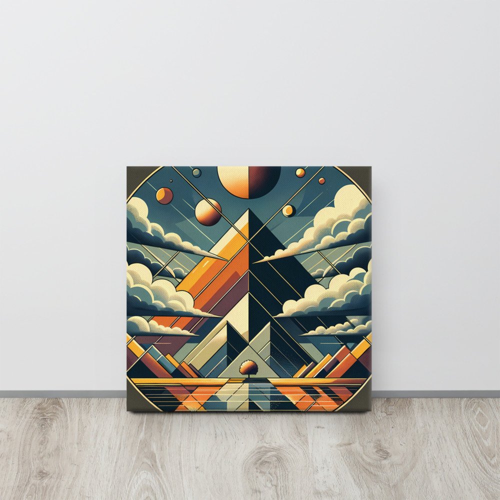 Retro Geometric Mountain Sky with Moons and Clouds — Canvas Print
