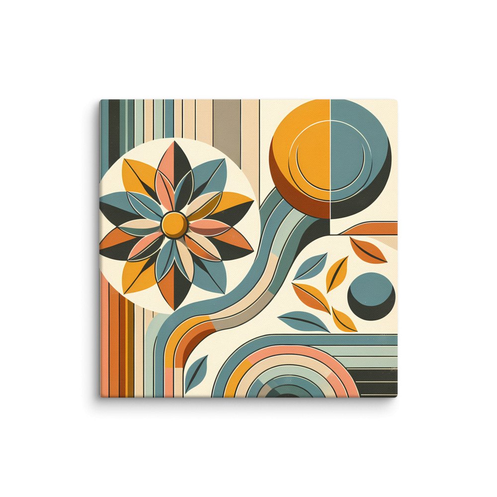 Geometric Botanical Flower with Retro Arches — Canvas Print