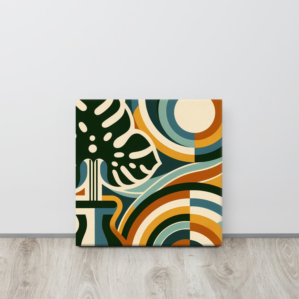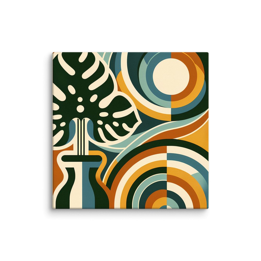 Monstera CitadelAbstract Monstera Vase with Geometric Arches — Canvas Print