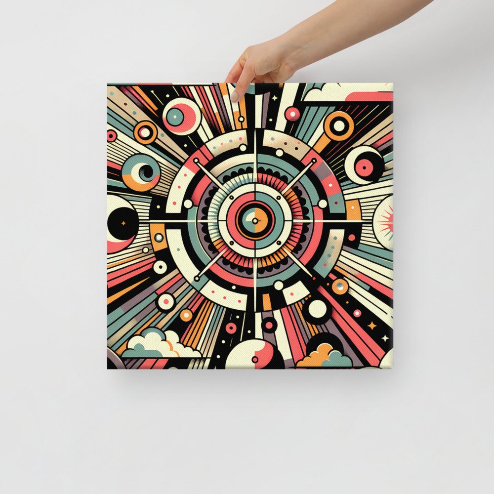 Retro Geometric Space Scene with Clouds — Canvas Print