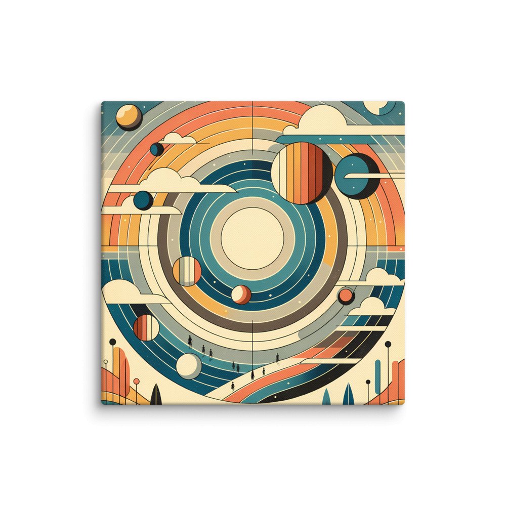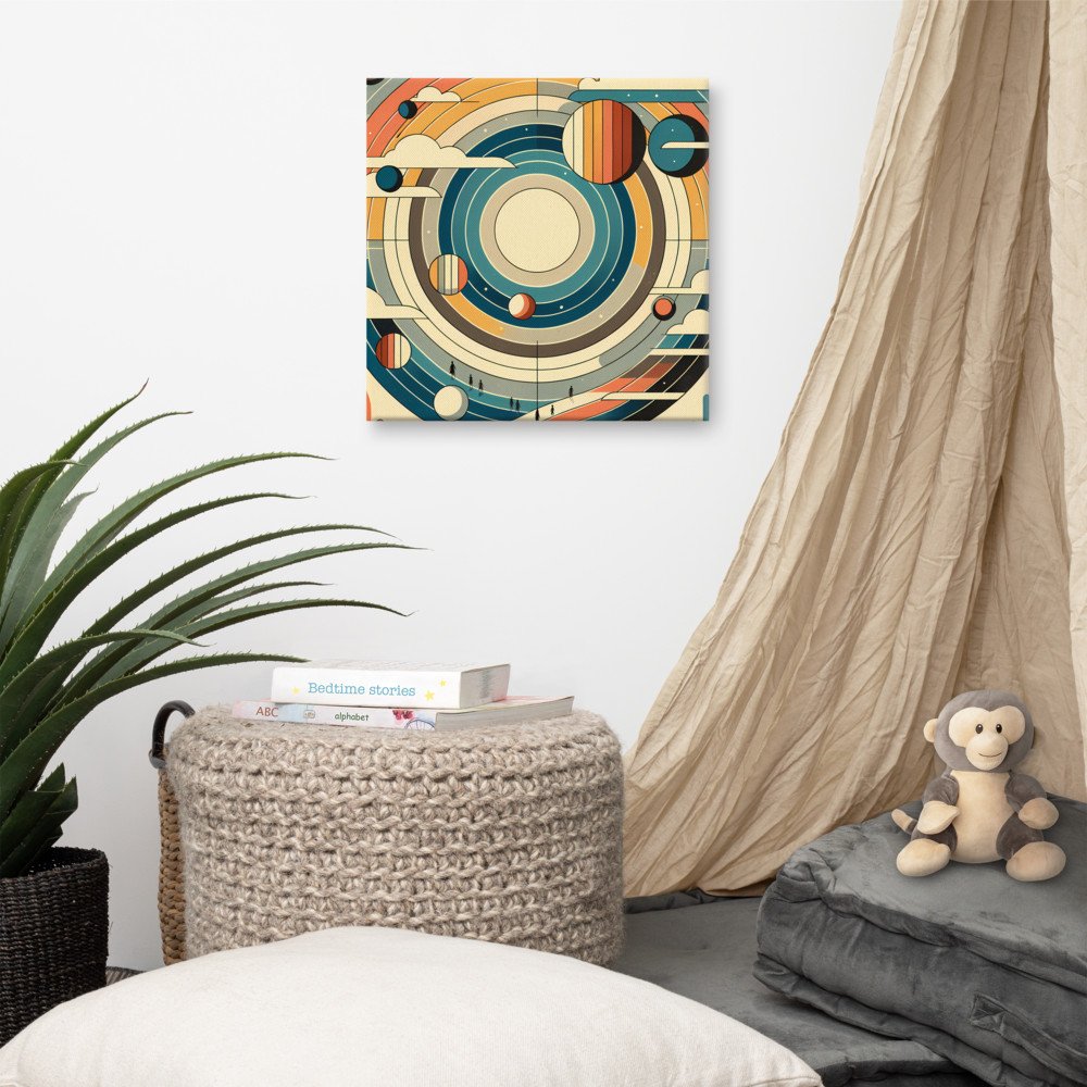 Luminous OrbitRetro Geometric Space Planets with Rainbow Rings — Canvas Print