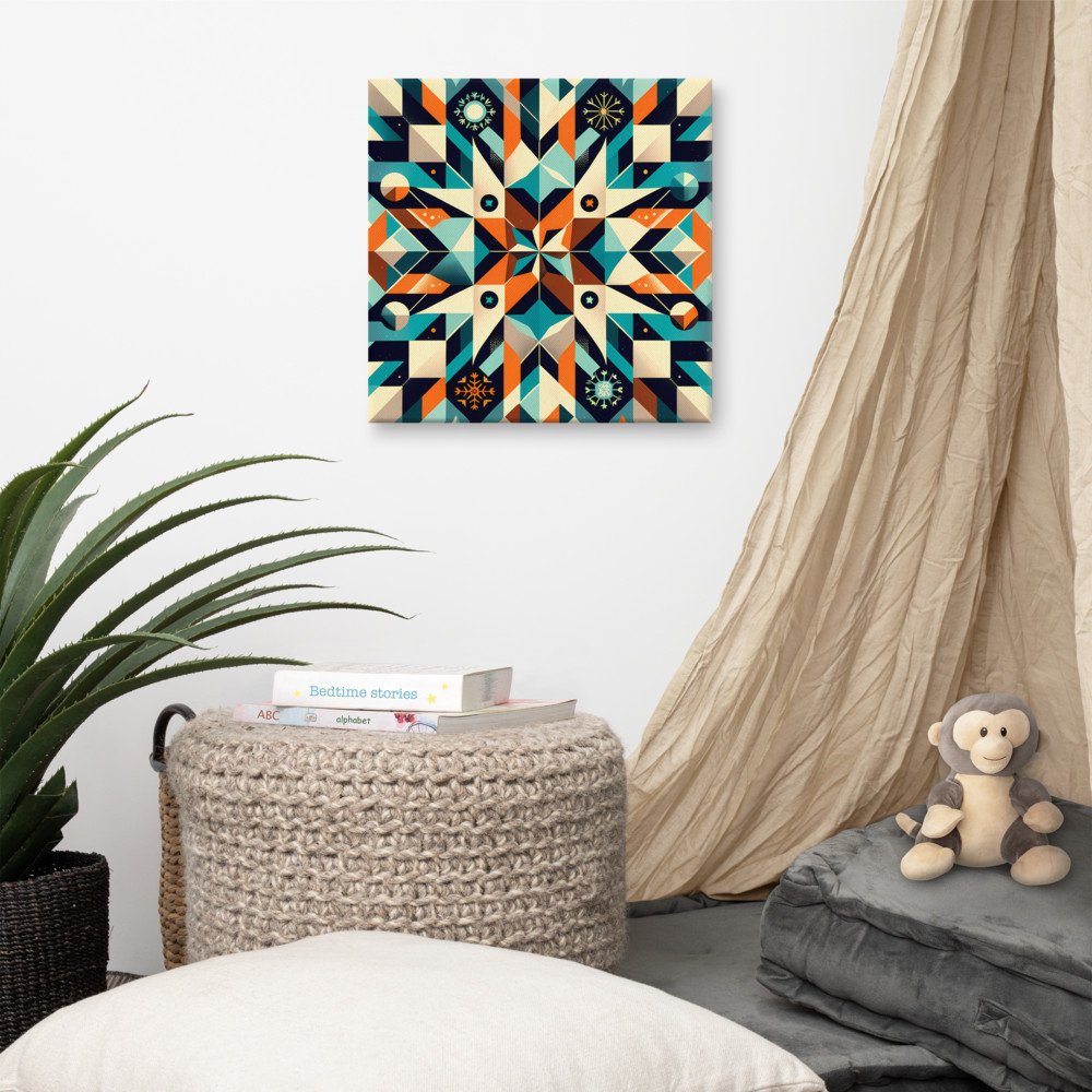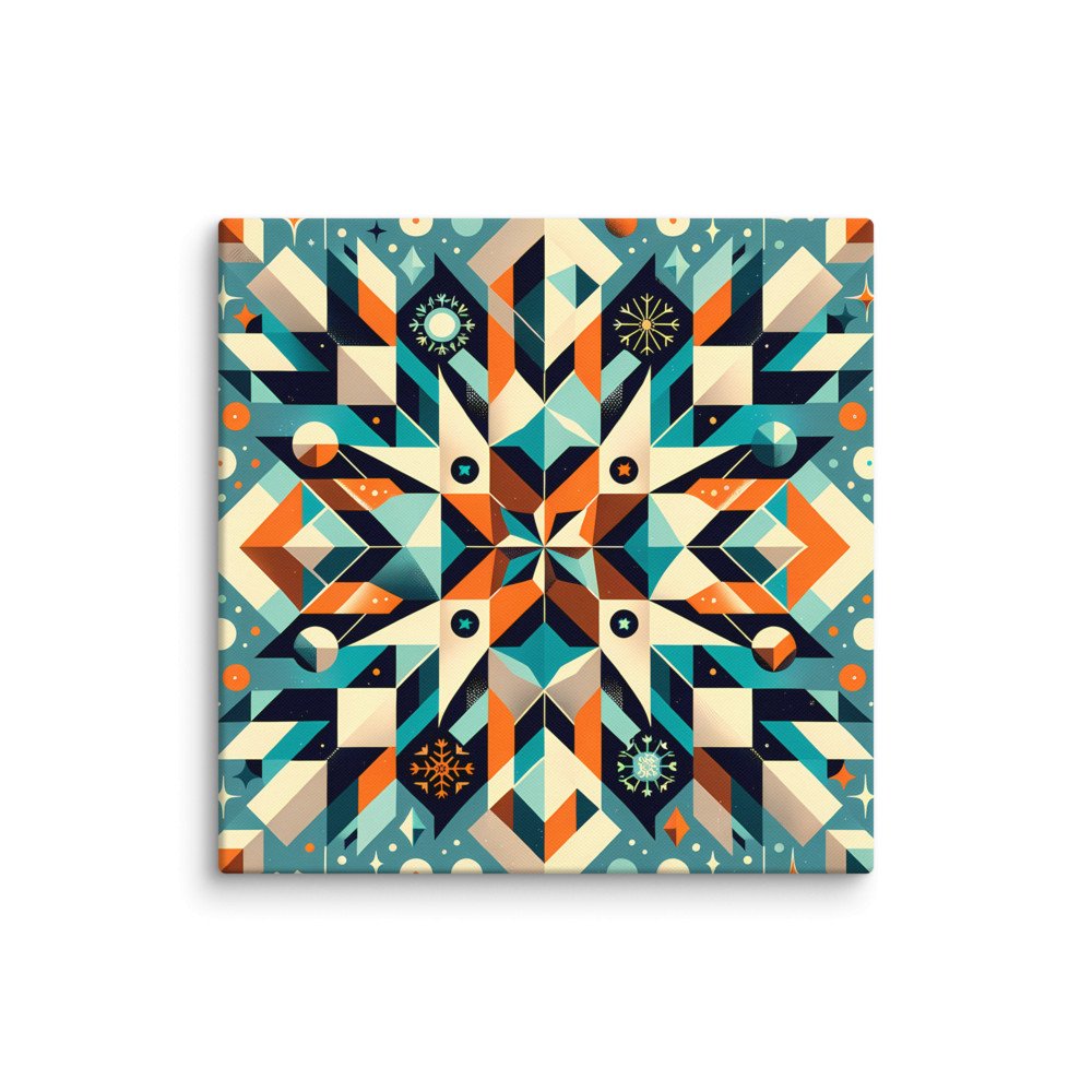 Geometric Snowflake Pattern in Teal and Orange — Canvas Print