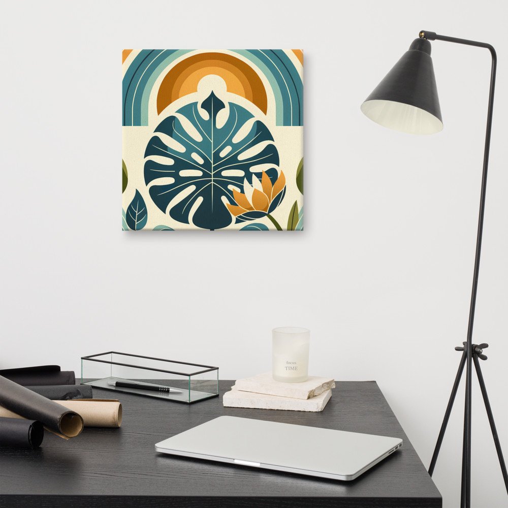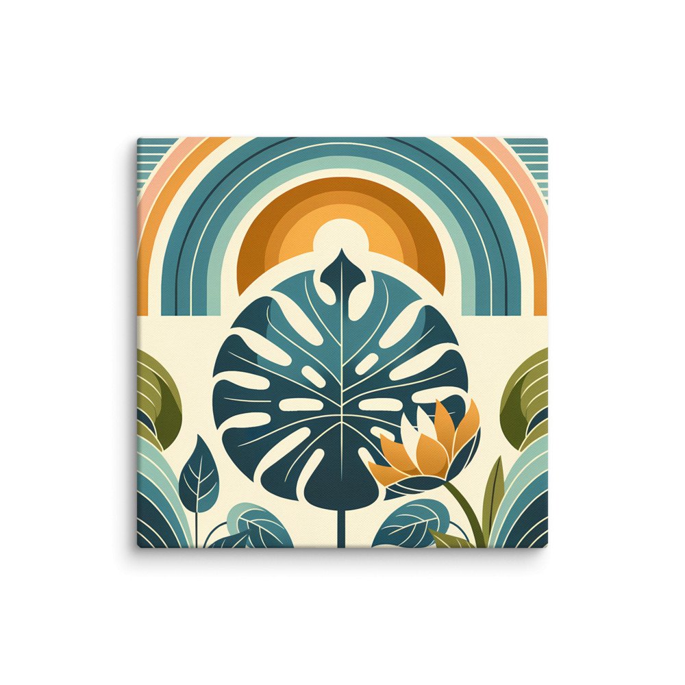 Amber CanopyMonstera Leaf with Rainbow Arches Botanical Design — Canvas Print