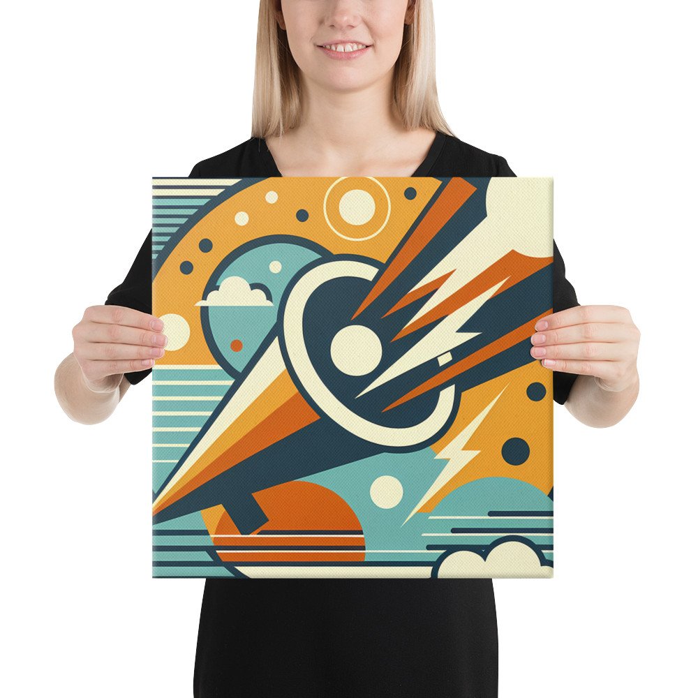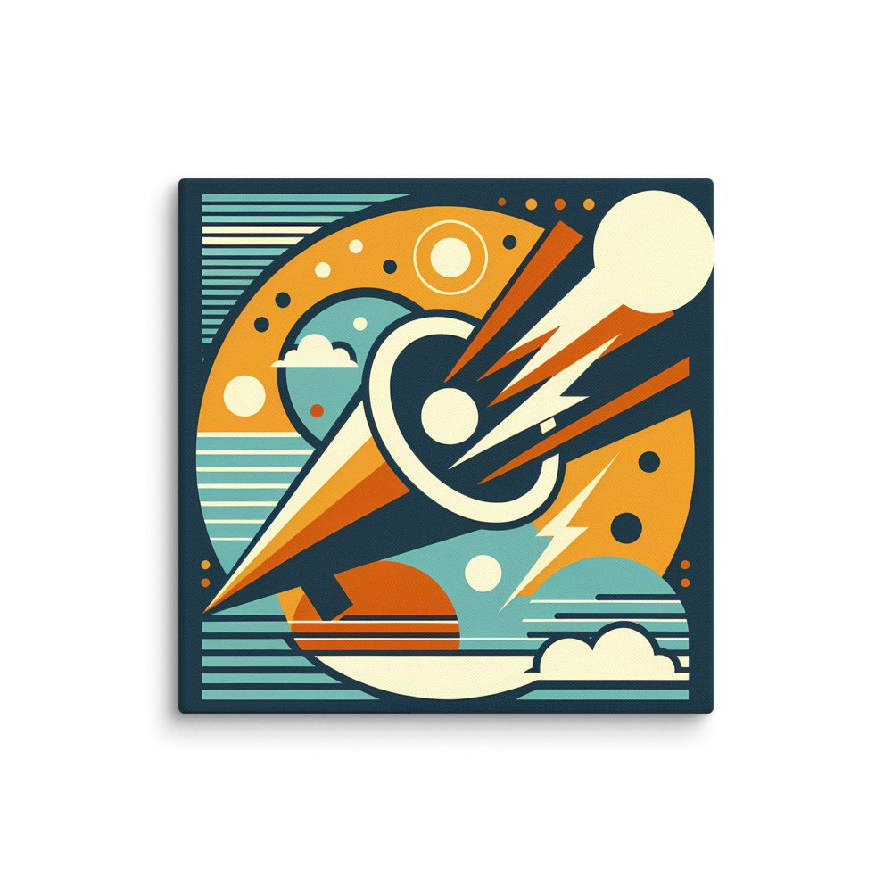 Solar DriftGeometric Comet Through a Retro Space Circle — Canvas Print