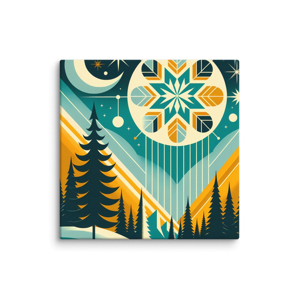 Geometric Winter Moon and Snowflake Landscape — Canvas Print