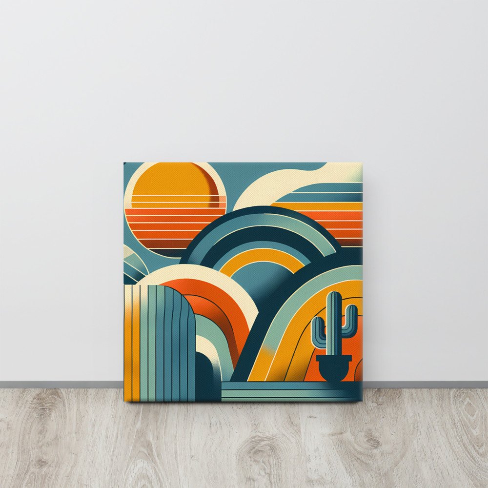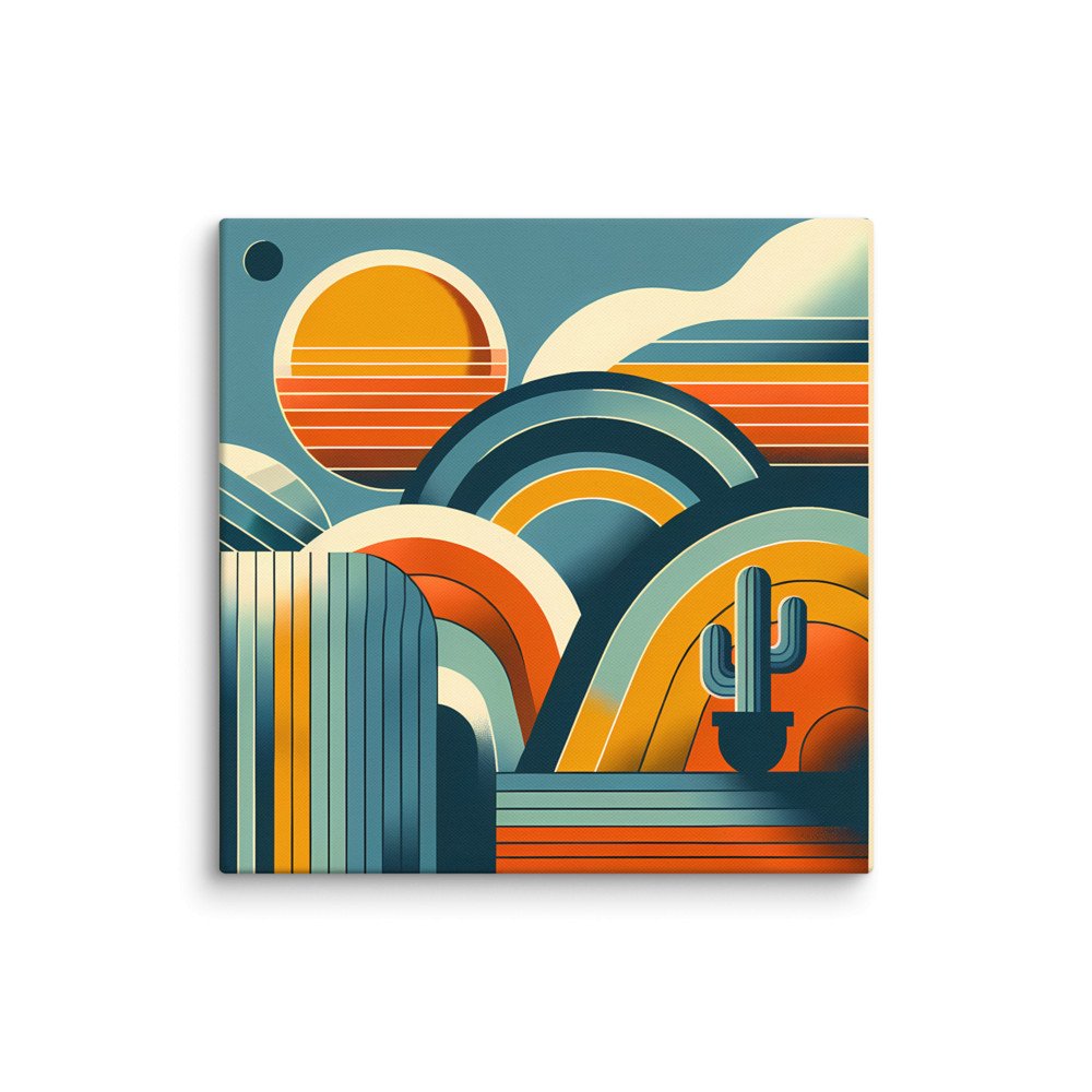 Saffron MesaDesert Arches and Striped Sun Illustration — Canvas Print