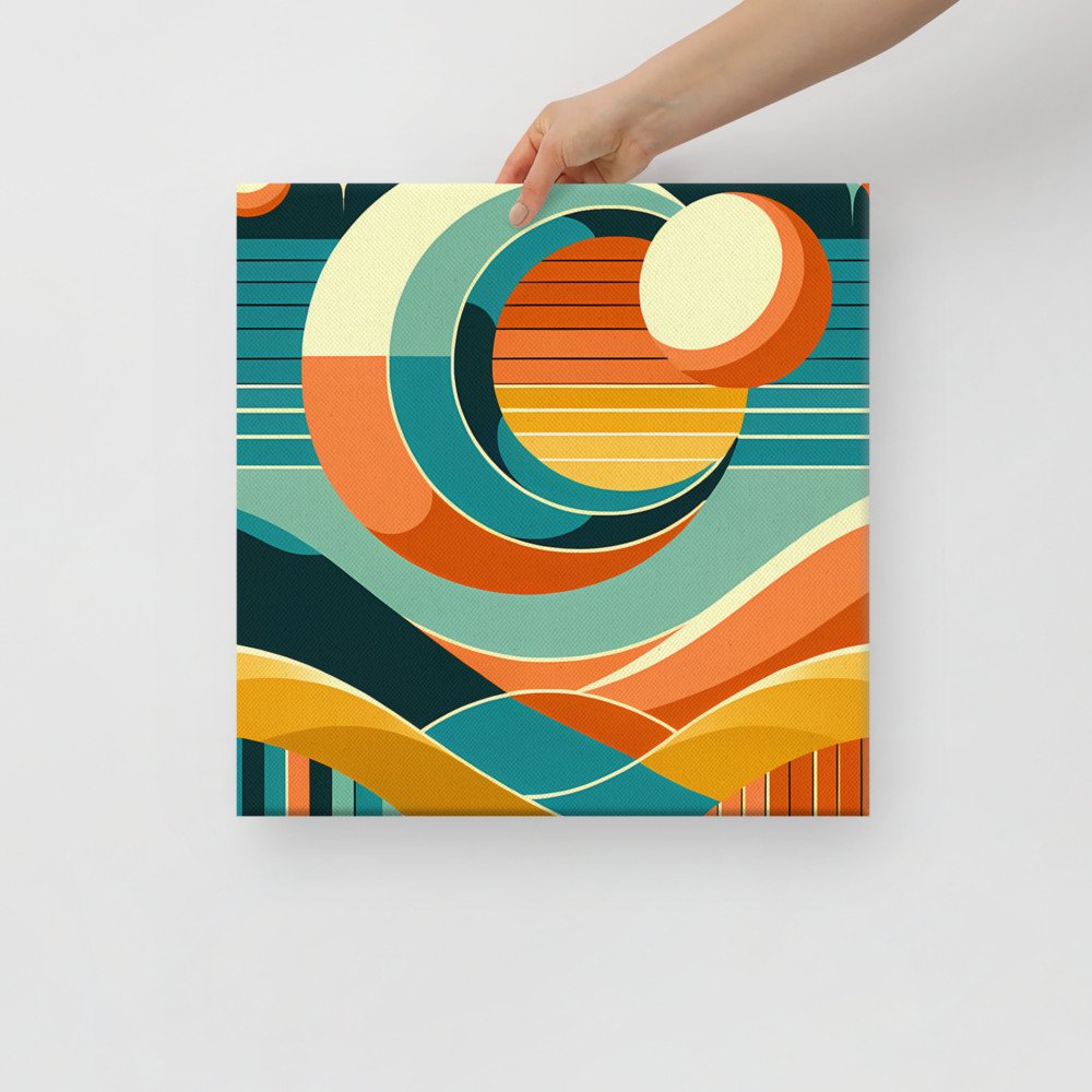 Geometric Sun and Moon Over Abstract Desert — Canvas Print