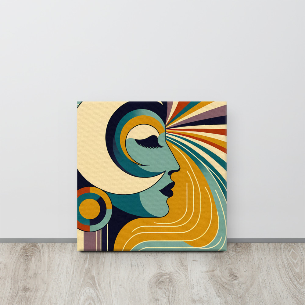Amber SolsticeRetro abstract portrait with sunburst lines — Canvas Print