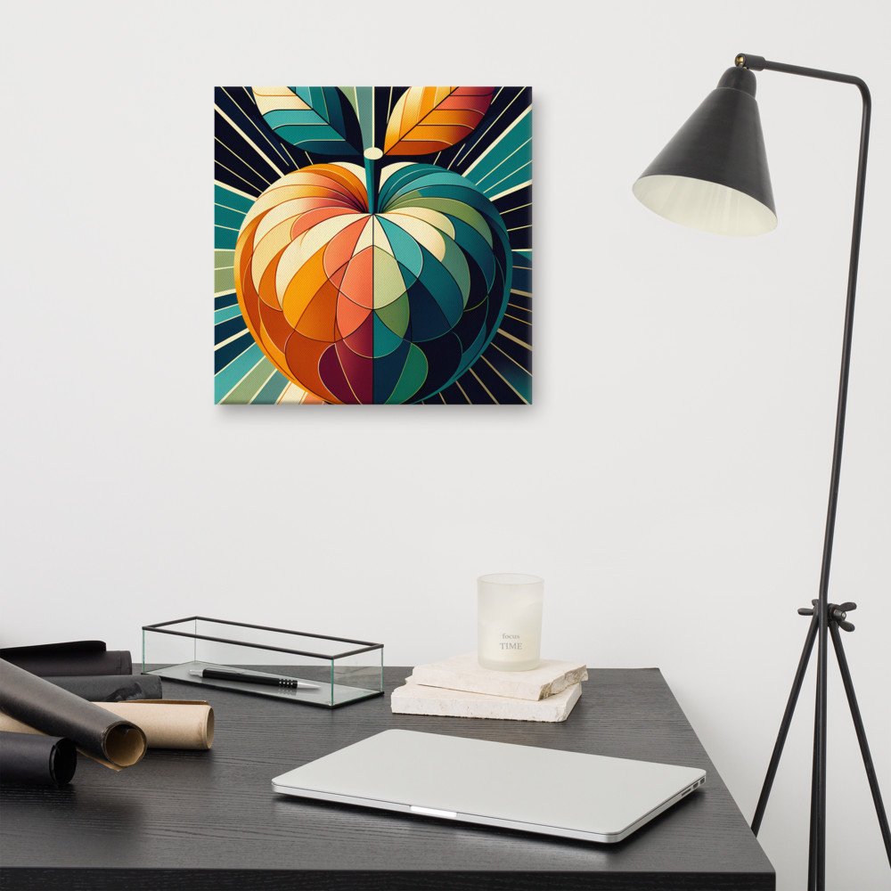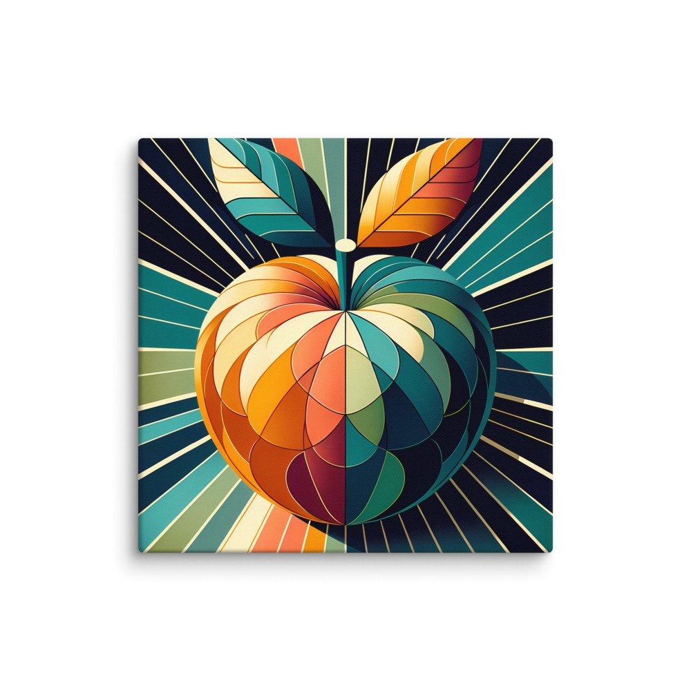 Retro Geometric Apple Sunburst in Teal and Orange — Canvas Print