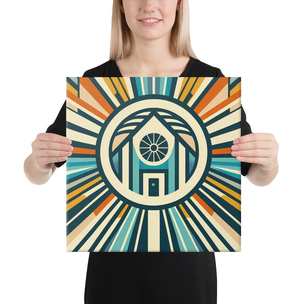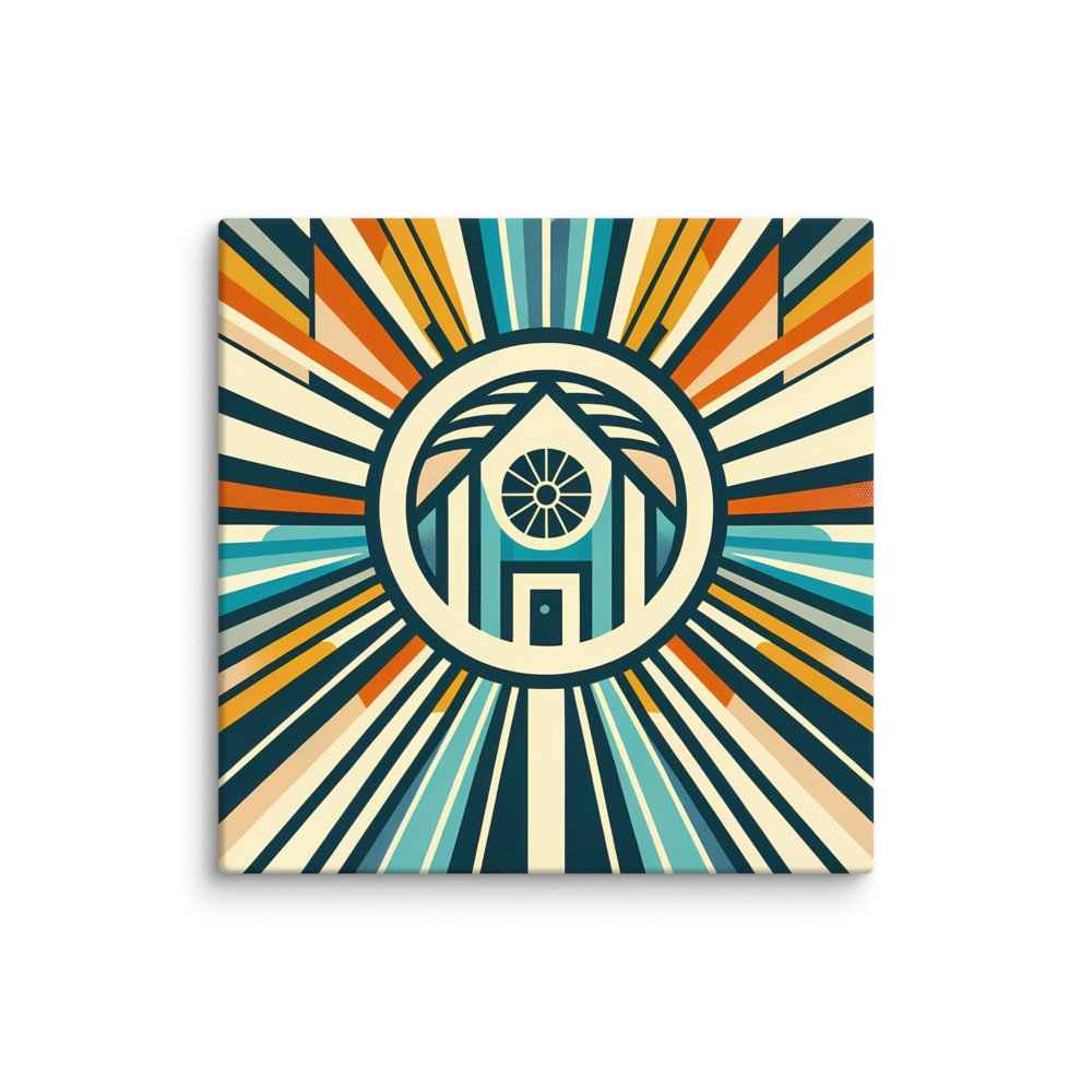 Retro Geometric House Sunburst in Teal and Orange — Canvas Print