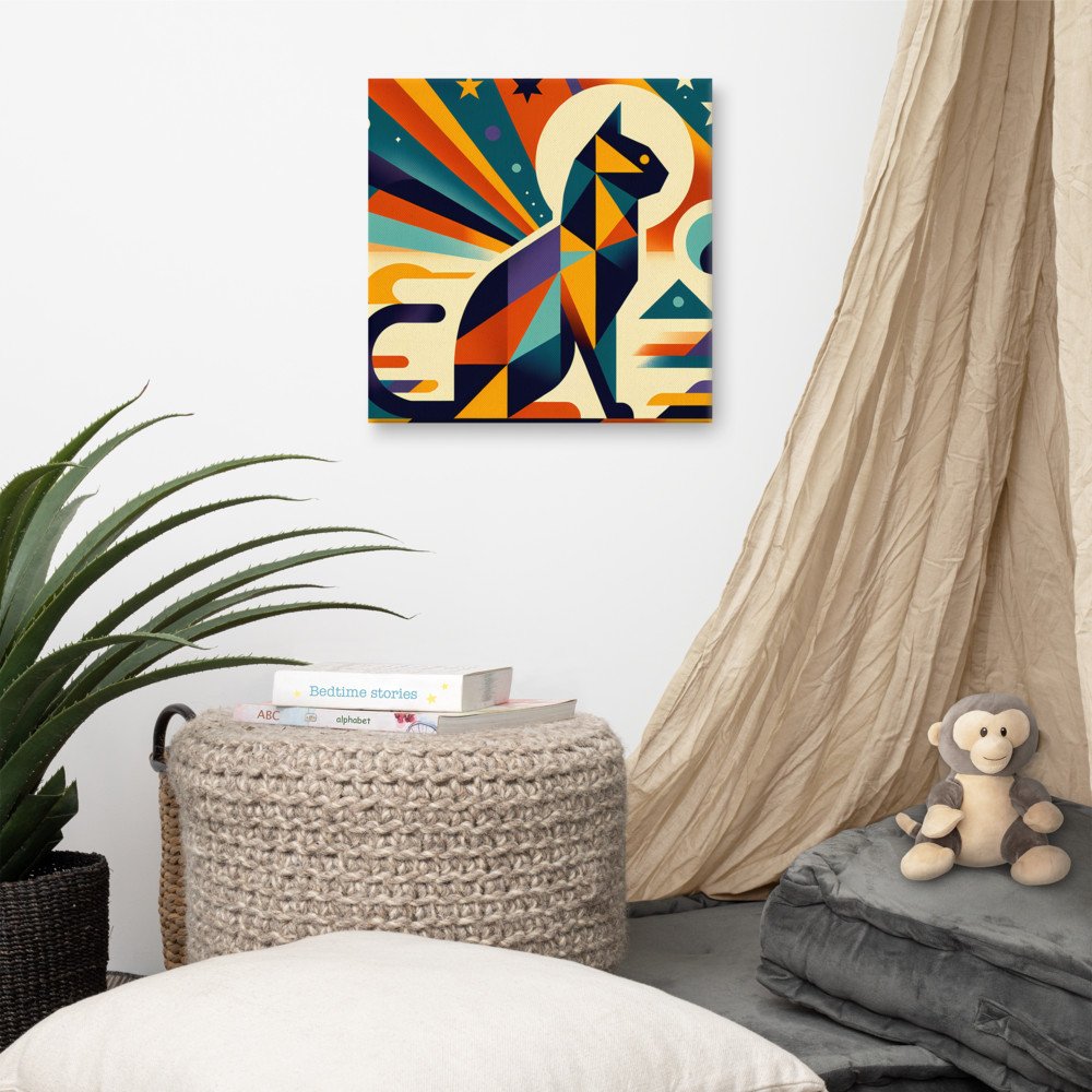 Stellar ProwlGeometric Space Cat with Retro Sunburst — Canvas Print