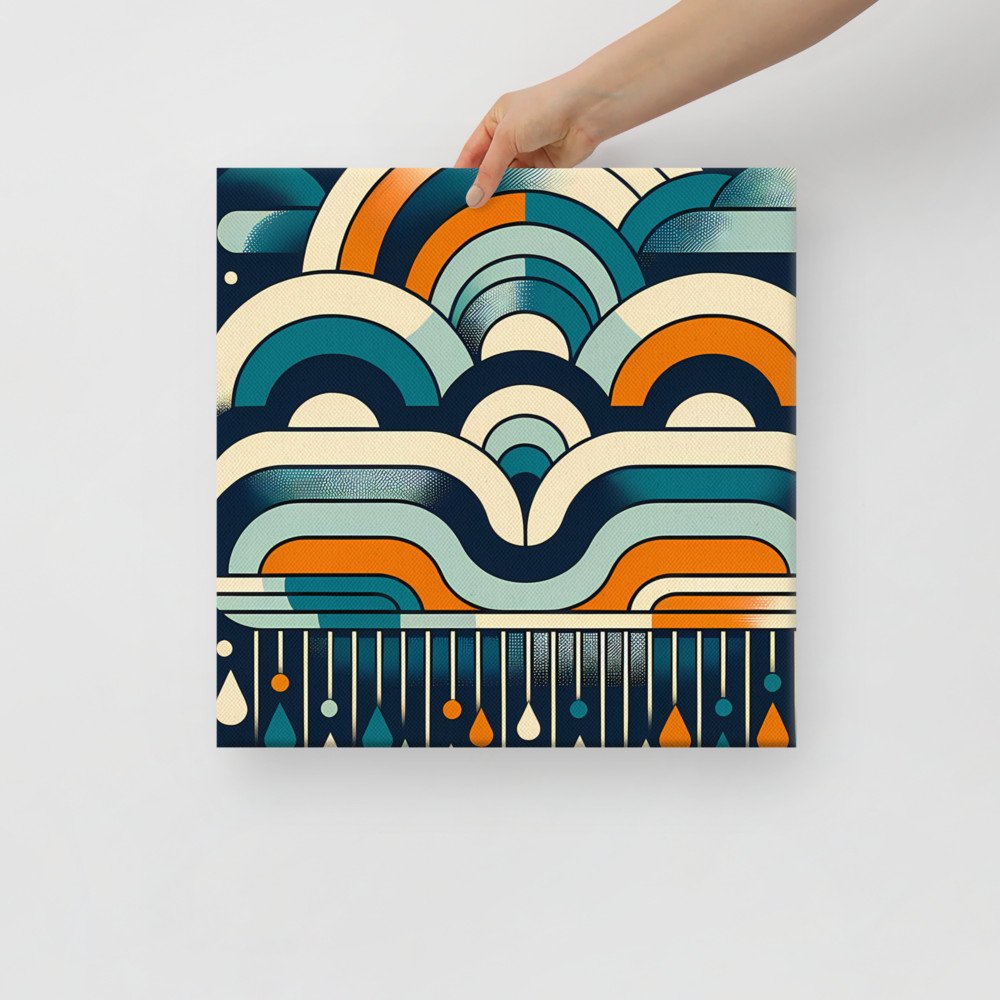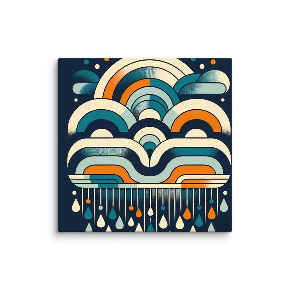 Retro Geometric Rainbow Clouds and Raindrops — Canvas Print