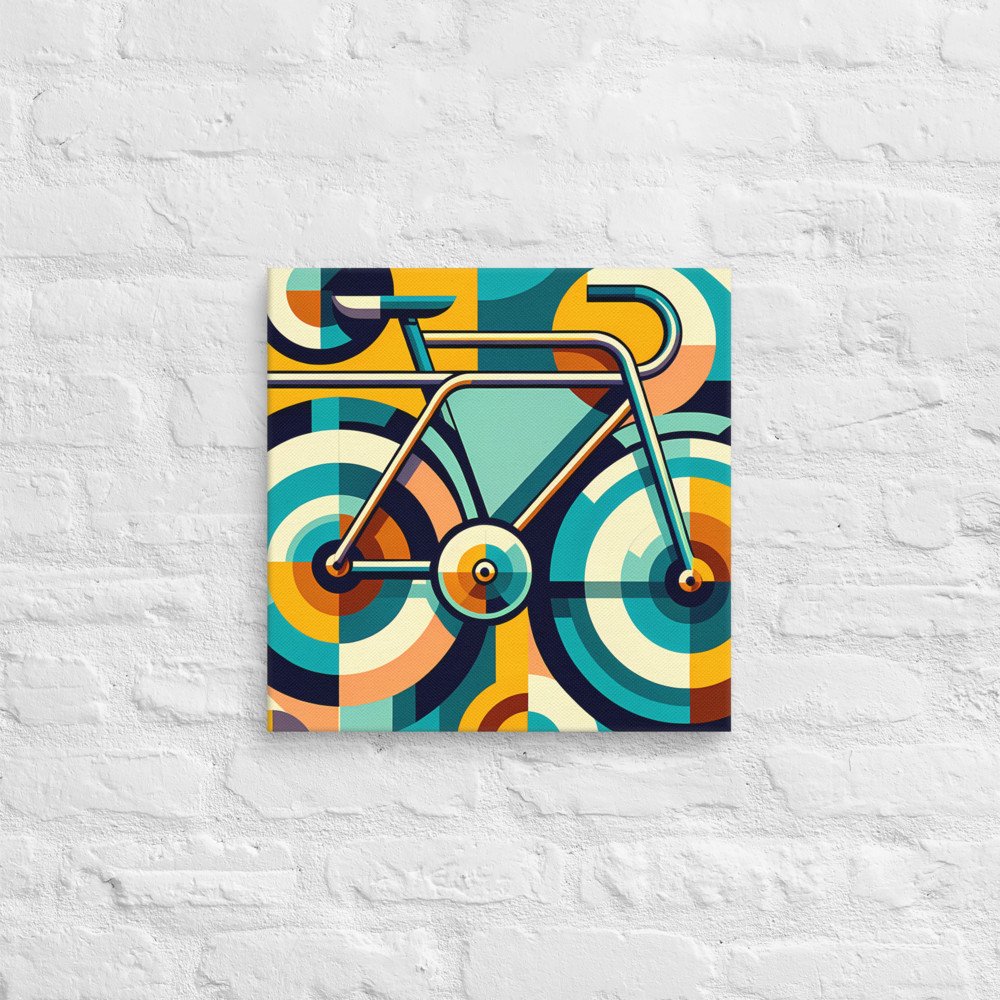 Geometric Retro Bicycle in Teal and Mustard — Canvas Print