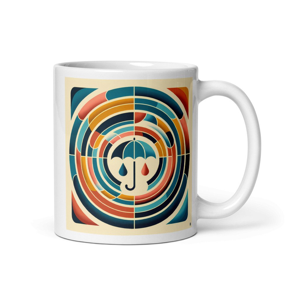 Cerulean SerenadeRetro Umbrella Geometric Art in Teal and Orange — Mug
