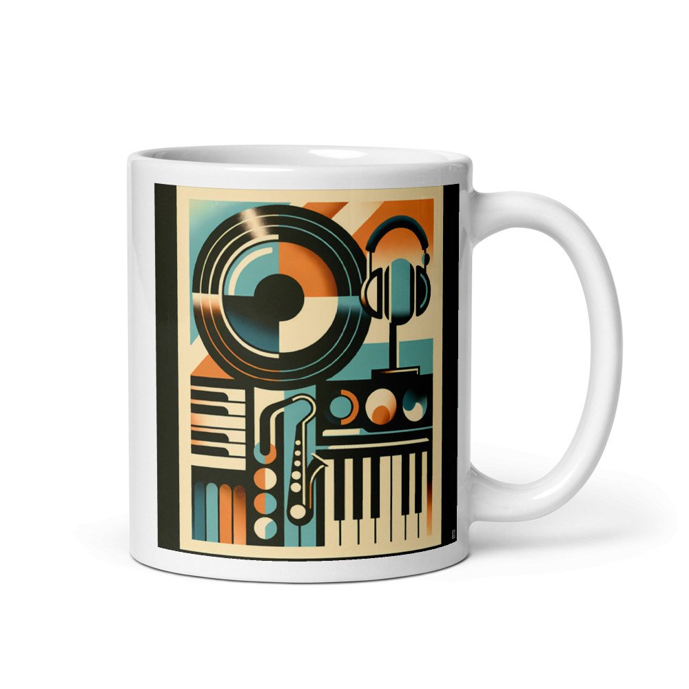 Sonic ReverieRetro Geometric Vinyl Record, Headphones and Piano Keys — Mug