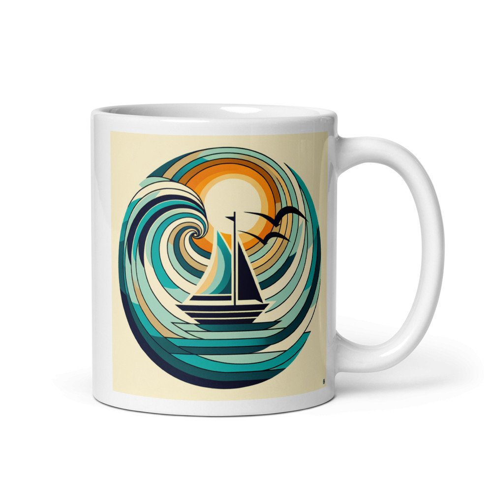 Azure OdysseyMinimal Sailboat in Abstract Wave Circle — Mug