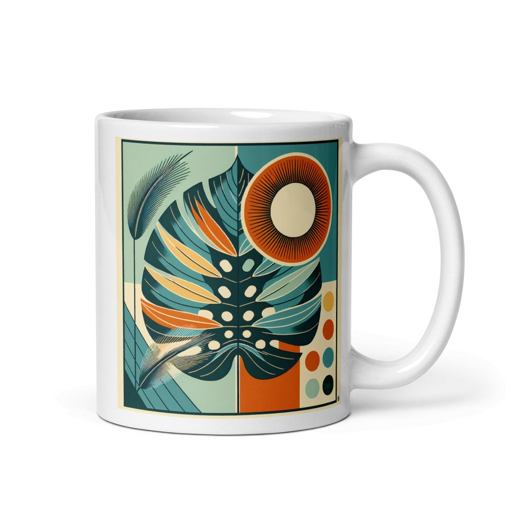 Flora PrismGeometric Monstera Leaf with Sun Circle — Mug