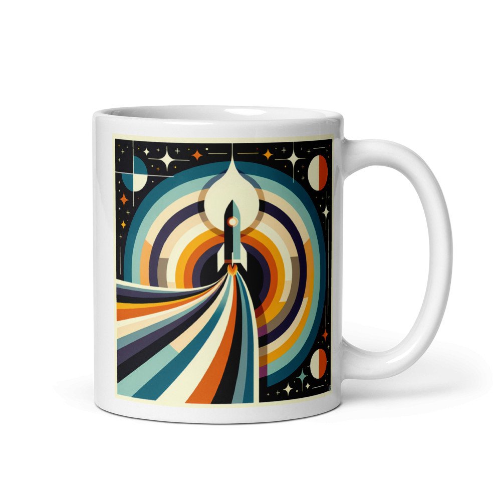 Luminous VoyageRetro Rocket Launch Geometric Space Illustration — Mug